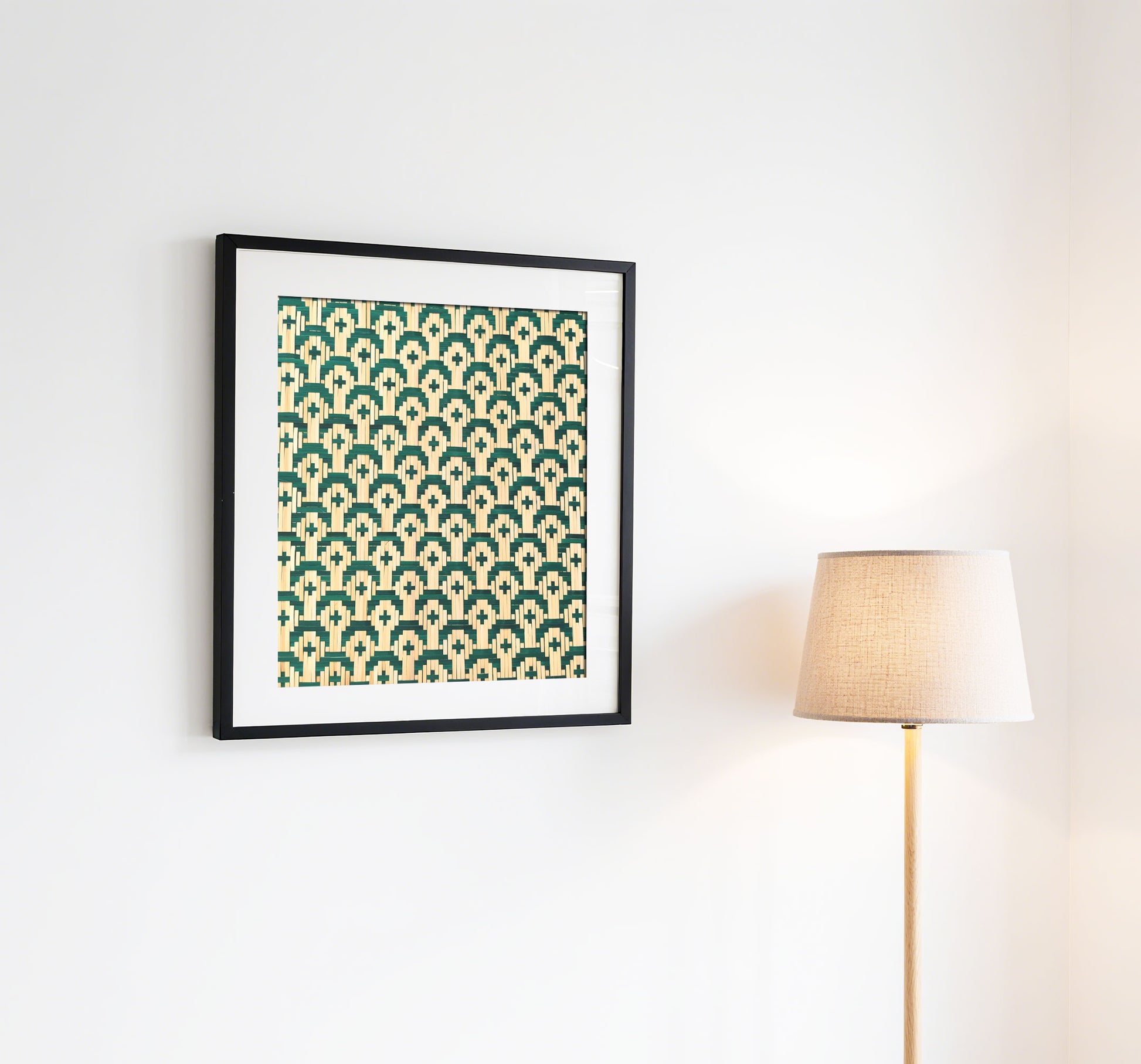 This is a handcrafted bamboo wall decor, meticulously crafted by artisans. Available in three frame options: wooden frames, black metal frames, unframed. These pieces add an artistic touch to any space.