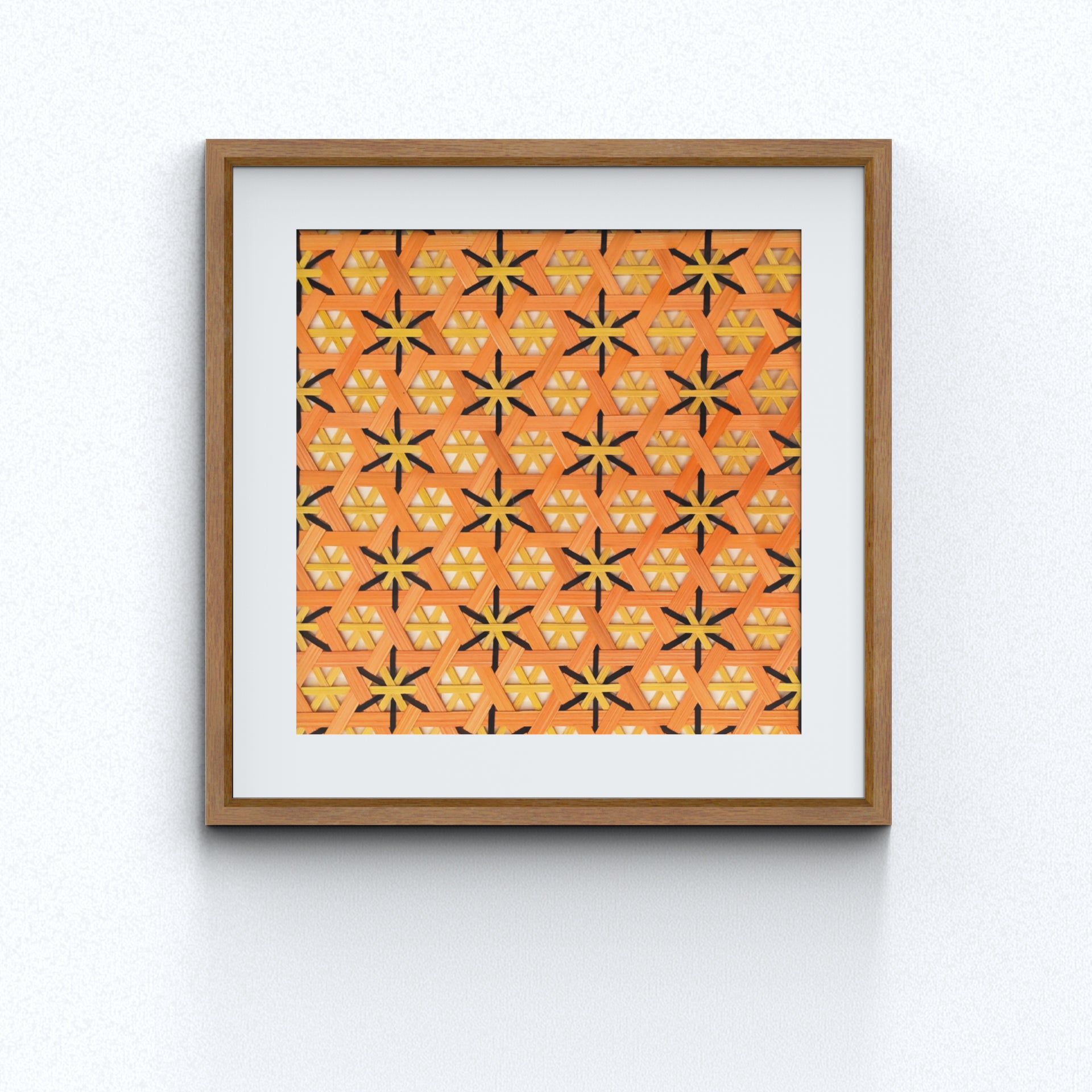 This is a handcrafted bamboo wall decor, meticulously crafted by artisans. Available in three frame options: wooden frames, black metal frames, unframed. These pieces add an artistic touch to any space.