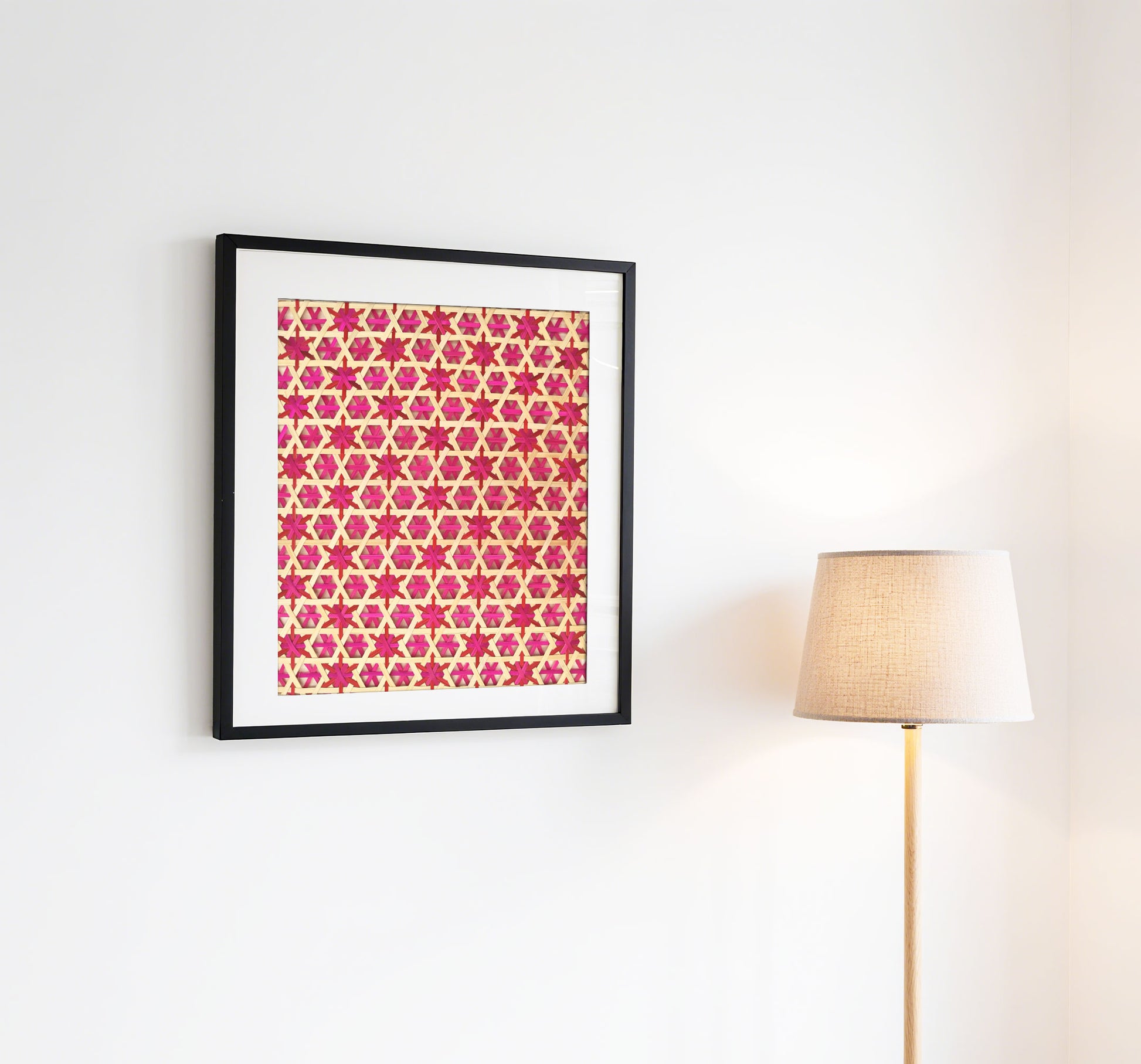 This is a handcrafted bamboo wall decor, meticulously crafted by artisans. Available in three frame options: wooden frames, black metal frames, unframed. These pieces add an artistic touch to any space.