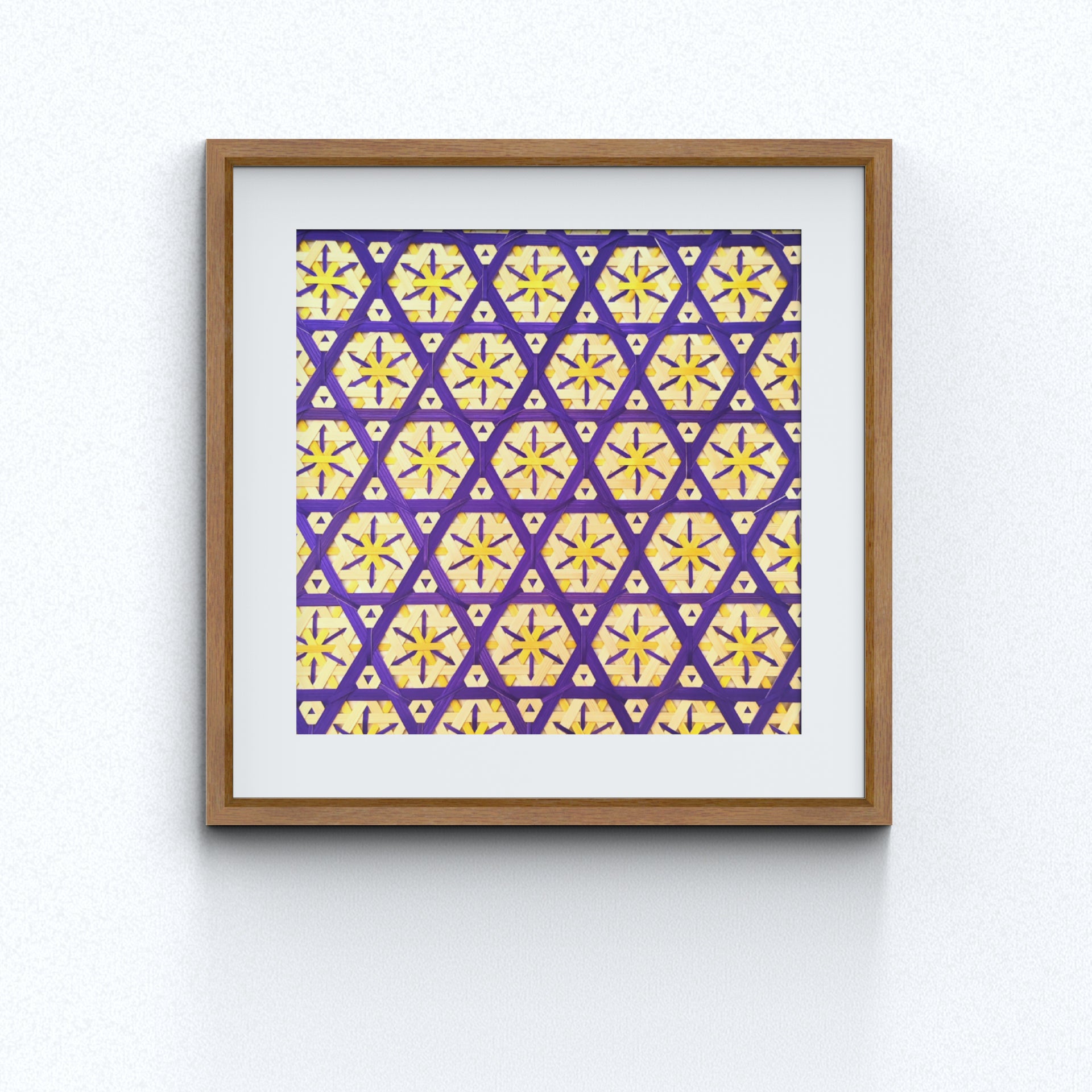 This is a handcrafted bamboo wall decor, meticulously crafted by artisans. Available in three frame options: wooden frames, black metal frames, unframed. These pieces add an artistic touch to any space.