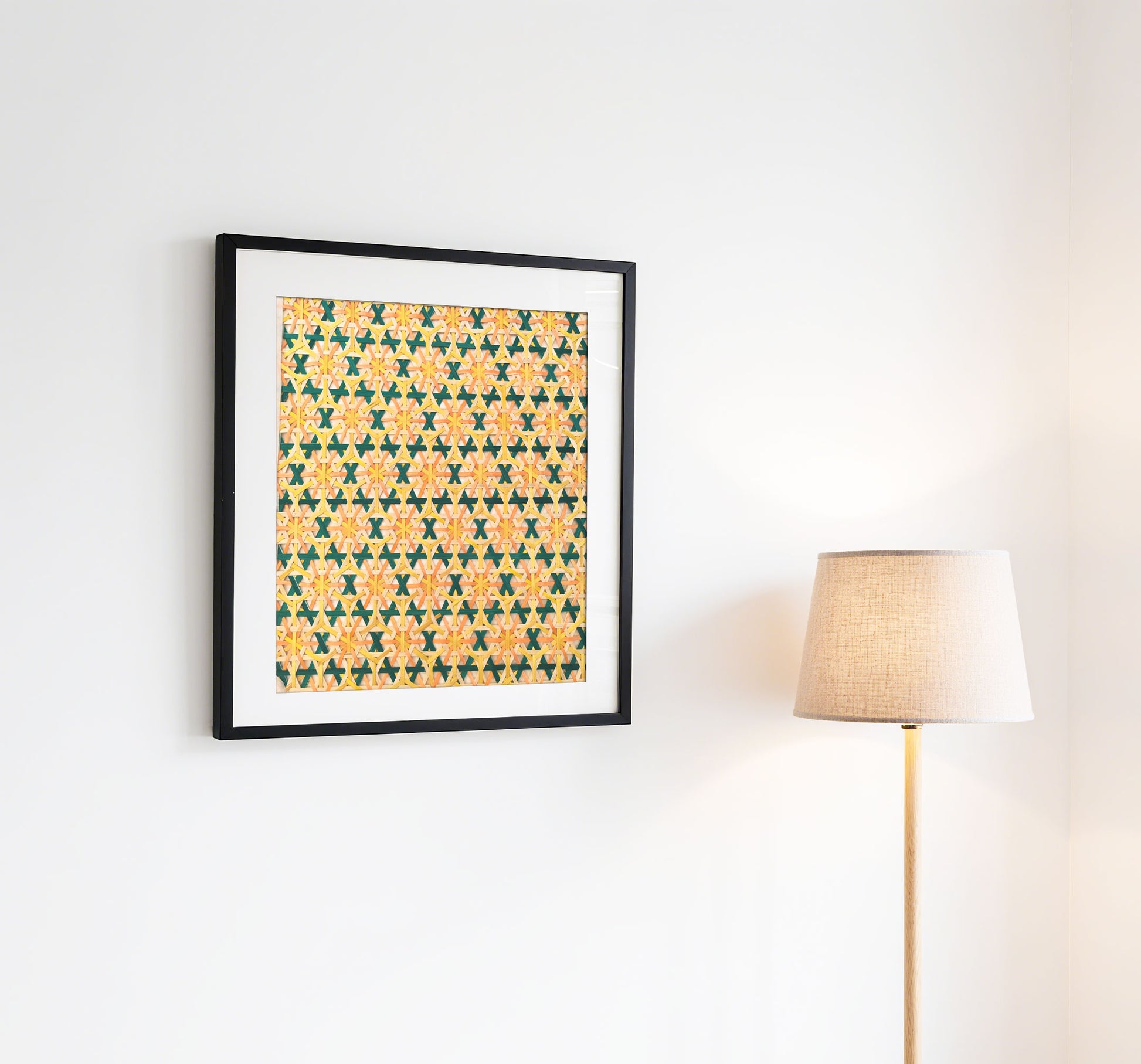 This is a handcrafted bamboo wall decor, meticulously crafted by artisans. Available in three frame options: wooden frames, black metal frames, unframed. These pieces add an artistic touch to any space.